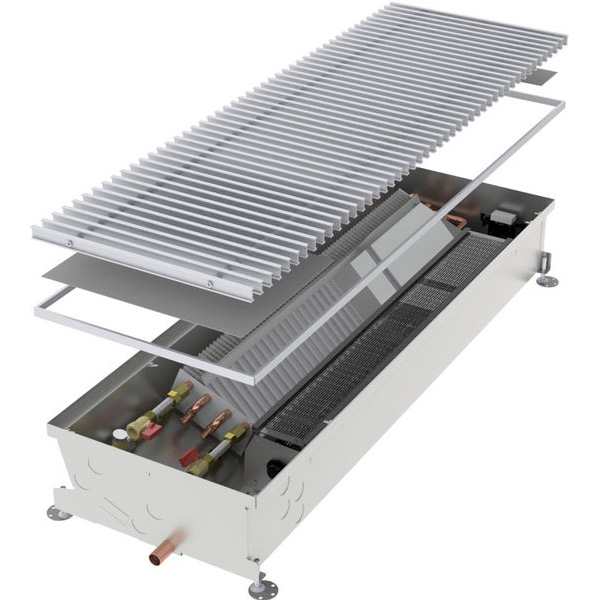 - возможность выбора оформления. Когда планируется монтаж внутрипольных конвекторов, заказчик может выбрать цвет, текстуру (латунь, медь, сталь, дерево и др.) верхней декоративной решётки